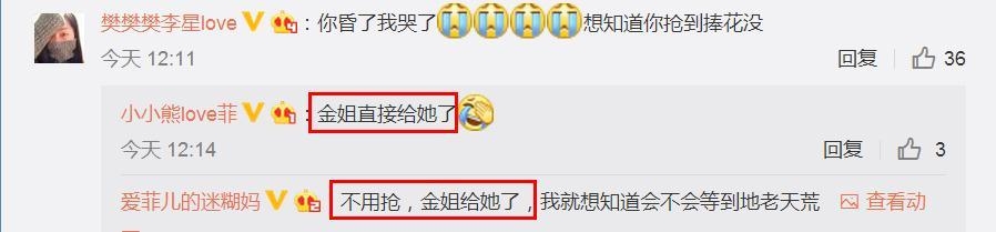 一般来说婚礼上最引人注目的环节不是新郎新娘接吻就是扔捧花了。在金小胖的婚礼上,新娘并没有扔捧花,而是直接将捧花塞到了李菲儿的手里,并且喊话:今天我想把这寓意幸福的捧花送给我最特别的伴娘李菲儿,下一个就是你了!