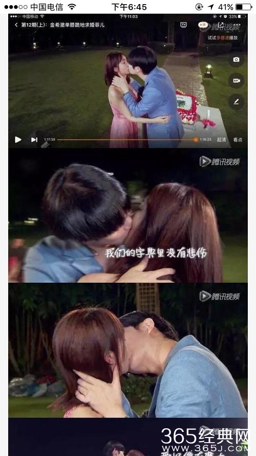 除了眼神,两人还在节目里接吻了!是真的接吻!不像周冬雨和余文乐那样借位,是真吻,还吻了不止一次!