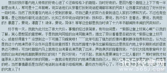 剧组中有几个台湾演员,看不起大陆人,他因不满而与他们出现矛盾,便成为了某些人眼中的刺猬。