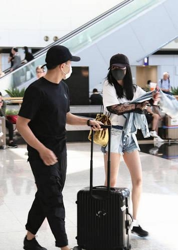 在机场的两人都十分有默契的带着口罩,而且看表情就知道,两人都在跟彼此聊天,而且聊得很开心。