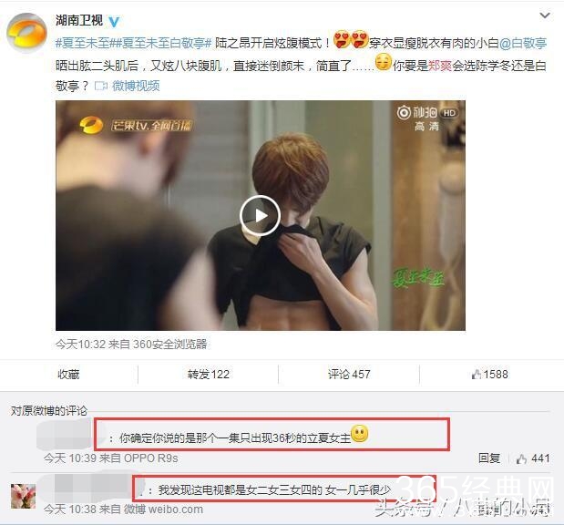 以至于湖南卫视官微想要宣传陆之昂的8块腹肌,结果热评居然是两条嘲讽的回复,“你确定你说的是那个一集只出现36秒的立夏女主”“我发现这电视都是女二女三女四的,女一几乎很少”。