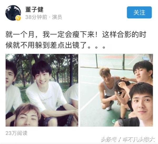 让不少网友哭笑不得的表示,『没看见你多胖呀?男人也这么注重身材的吗?』不管如何,还是祝福董子健瘦身成功,早日自信出镜吧!