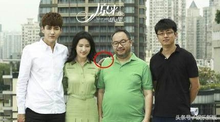 合影时默默的将手背着。