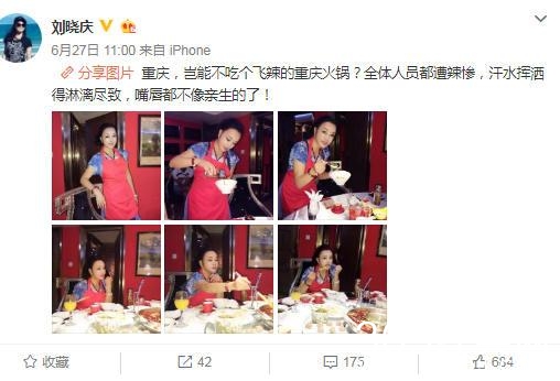 昨天中午,刘晓庆就在微博晒自己吃火锅的照片了,想来也是不愿辜负此次重庆之行吧