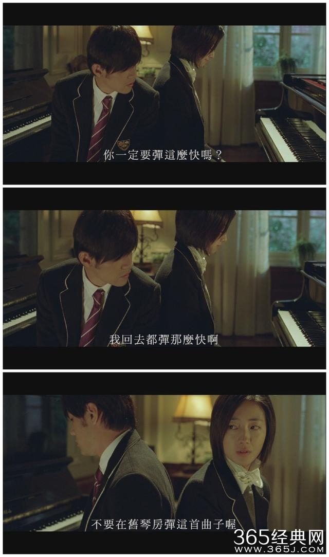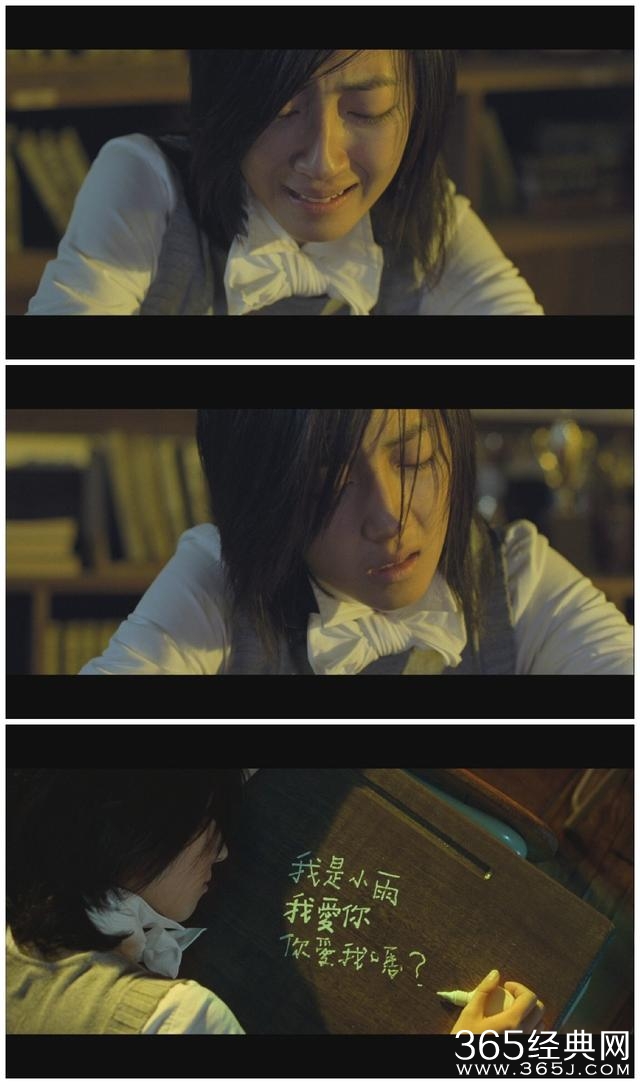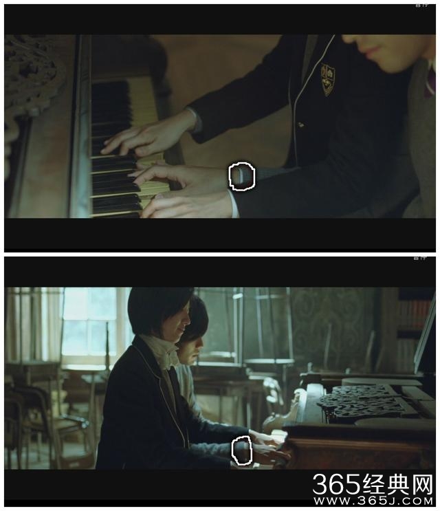 注意看白袖子,弹琴时是连贯的画面,一般情况下手臂不往下拽的话,外层的衣服不会盖住里面的袖子。但是其他地方例如摆设、发型却看不出一点破绽,周董简直是最良心的业余导演!(不想跟郭敬明比……)