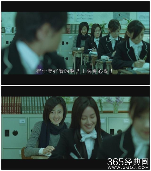 只有周杰伦才能看到桂纶镁,别人看不到。镜头特地将前面那个女生晴依虚化,让人不易察觉她俩都在笑。老师和同学都以为杰伦是在看晴依,所以晴依得意地偷笑。