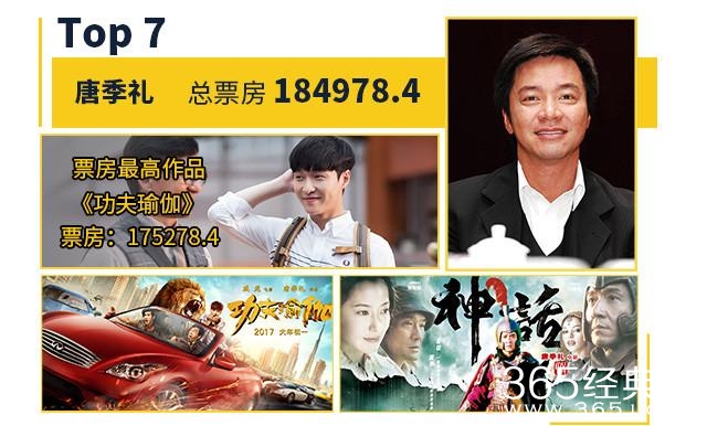 唐季礼早年间和成龙合作了一系列卖座动作片,这一阶段的代表作有《红番区》及“警察故事”系列的三四部等。新世纪他执导《雷霆战警》后开始北上,转型做了一名电视剧导演,电影产量极低,只有《神话》和《功夫瑜伽》两部作品。但他凭借《功夫瑜伽》17亿多的超高票房成功跻身这个榜单之列。