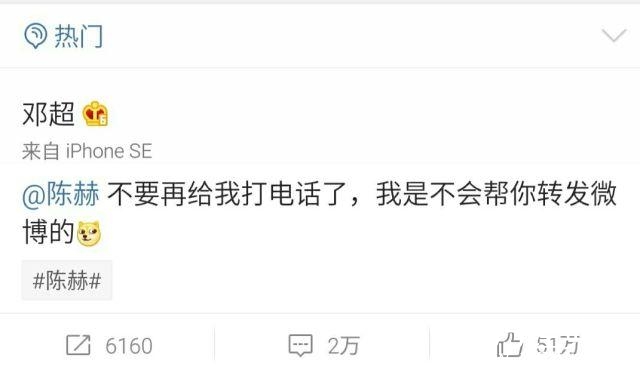 发微博艾特陈赫称:不要再给我打电话了,我是不会帮你转发微博的。又成功把网友的目光吸引了过去,并直接把陈赫和新片《超级快递》送上了热搜。