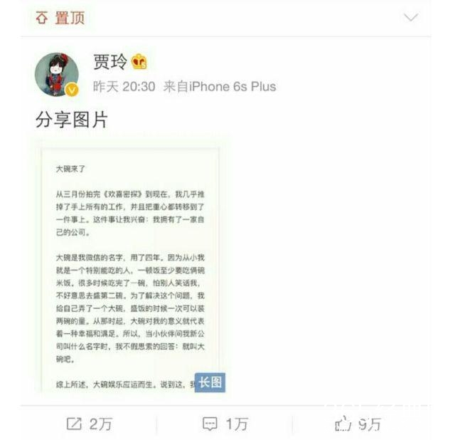 网友纷纷赶去贾玲的微博围观,一看之下才知道原来贾玲开了一家名叫“大碗来了”的公司,邓超是在用这种特殊的方式为贾玲做宣传。纷纷大呼‘简单点,做宣传的方式简单点’,‘超哥真是打得一手好广告’。
