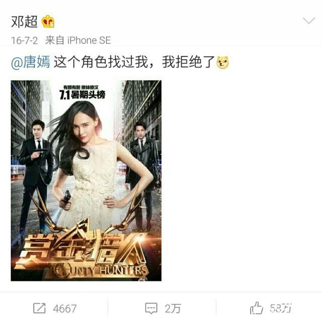 为唐嫣宣传《赏金猎人》:这个角色找过我,我拒绝了。超哥你是认真的吗?