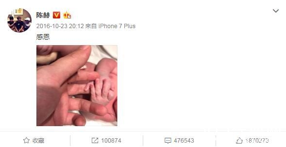 因离婚事件口碑极差的陈赫,即使在发个微博都要被人骂的时候,也忍不住想分享自己当爸爸的喜悦。