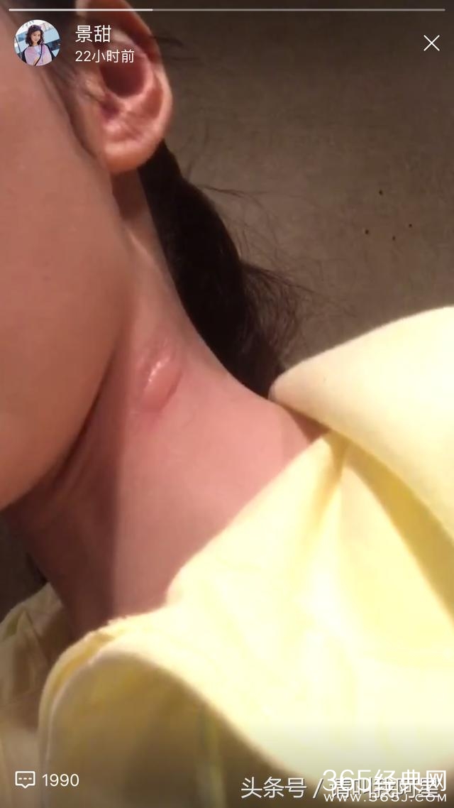近日,景甜在微博发出一段小视频,短短几十秒的段视频,可看出景甜似乎正处于外地拍戏,而脖子上竟长出了一个大包。