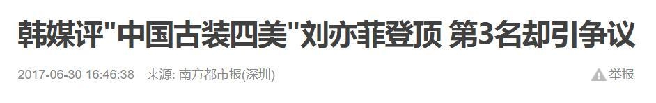 最近,韩媒又评出中国古装四美,第三名又惹了争议