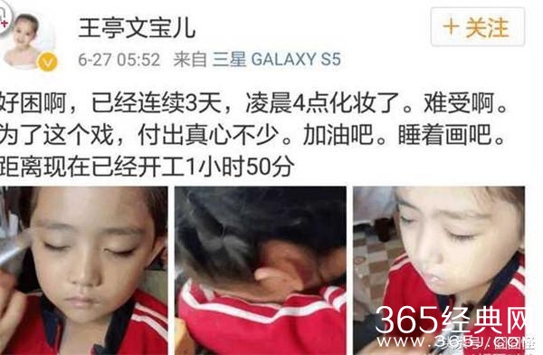 照片中的王亭文全程闭着双眼,有一张还整个人都趴在了桌子上,看上去十分困倦,虽然不知道这条微博是王亭文自己更新抱怨的,还是她的家人更新来突现小朋友的辛苦的。