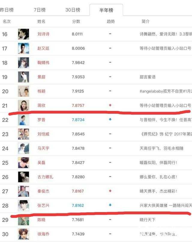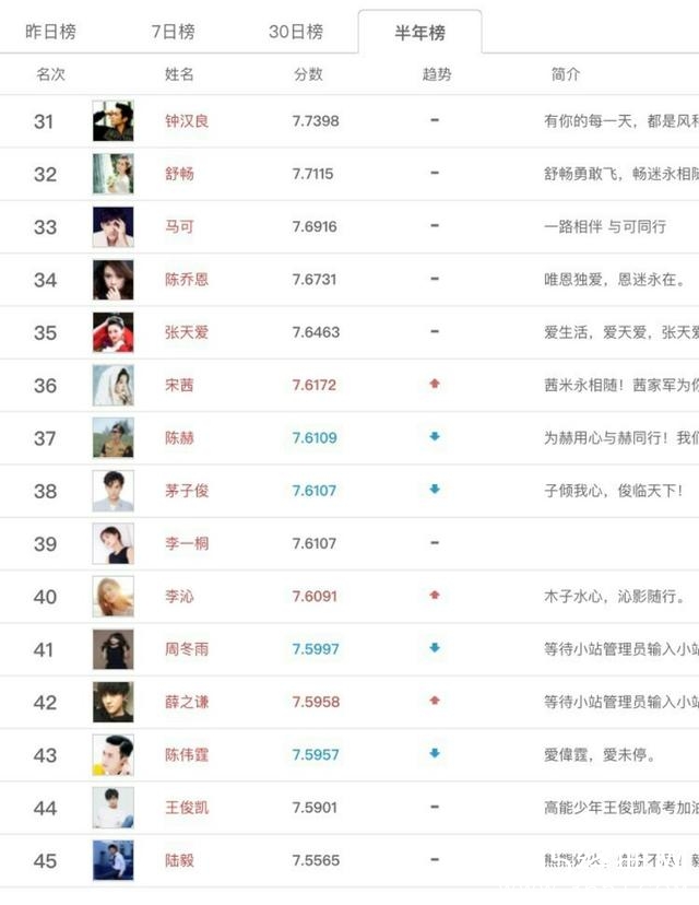 还有很多的人气偶像也都上榜了,一共60位,小编呢就不一一介绍了,要不累死了哈哈,大家赶紧来找找自己的爱豆吧,有一样的可以互粉一下呦