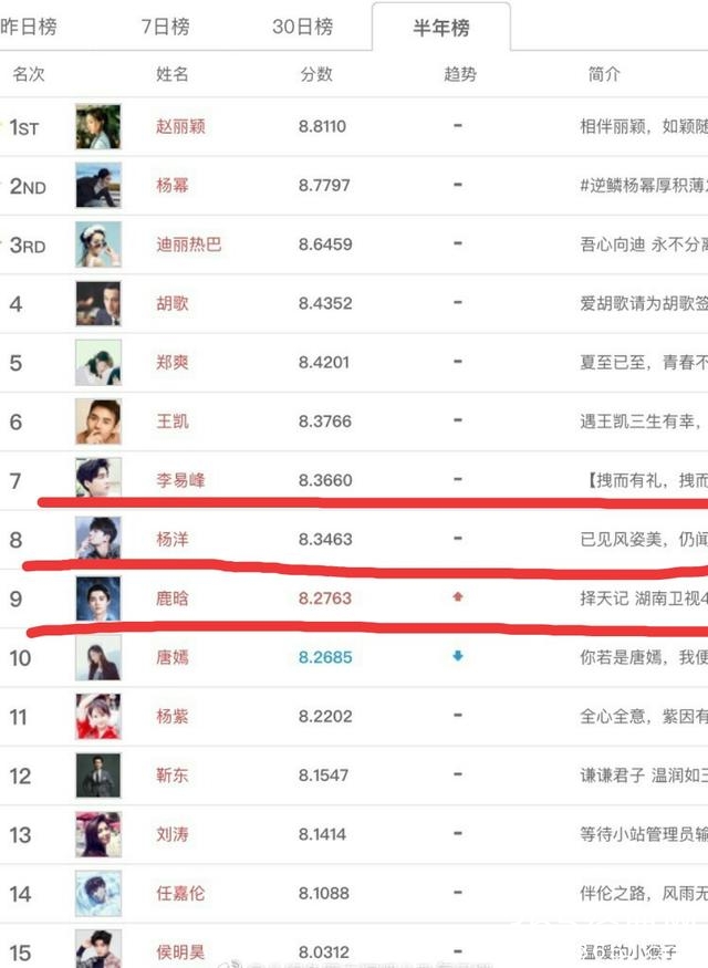在我们忙忙碌碌生活的同时,各位明星们也没闲着,就前半年来说,给我们带来了好多的作品呢,比如最近大火的《楚乔传》,《夏至未至》,《上古情歌》等等等等,虽然褒贬不一,但热度绝对够火爆,那么作为这些热播剧的男女主演们,更是收获了超高的新媒体热度,今天,有知名博主po出了“v榜半年明星流量排行”,快来跟小编看看你家爱豆有木有上榜啊