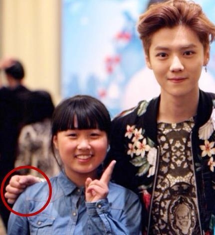 鹿晗,感觉也是羞答答的一位,在和喜欢自己的小粉丝合照,手也同时显现出了绅士。