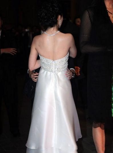 刘亦菲这一身装扮,也是生怕自己走光,大概是因为很少穿礼服的原因,刘亦菲显得也非常的不习惯,一直不停的整理的裙子和抹胸部位。