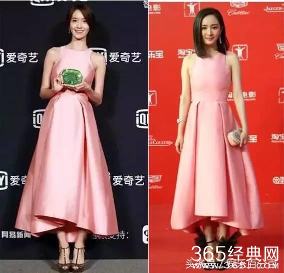 杨幂和林允儿同穿一条粉色裙子,两人都很美呢!