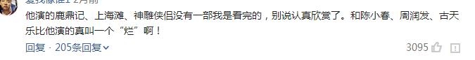 后面《神雕侠侣》连金庸都看不下去了,直接点评说他演技差