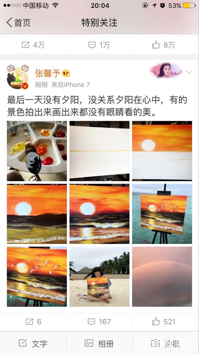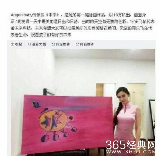 如果要把张馨予和杨颖的画来比较一下,我会觉得张馨予的画好看的多。那么问题来了,假如张馨予也拿她的画去拍卖,你们觉得会卖出多少钱呢?