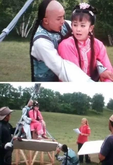 这位女演员完全没有马,骑在三轮车上,哈哈,后期给你P个马出来!这很考验演员演技啊,保持不要笑!