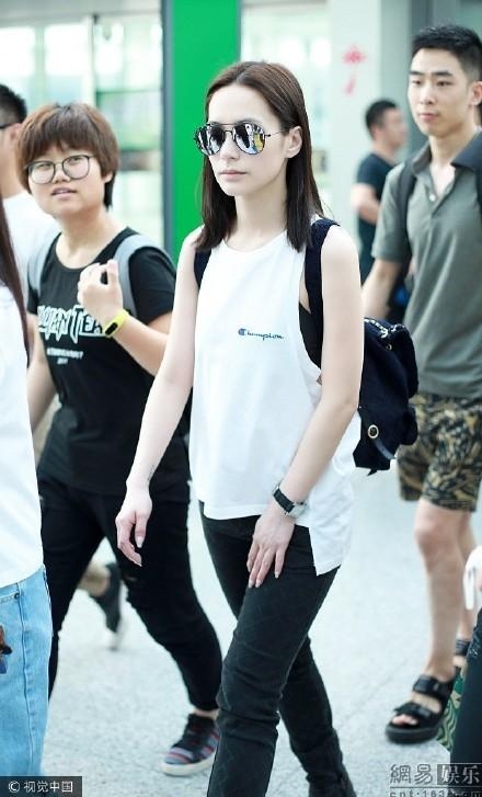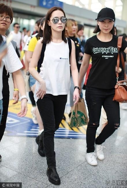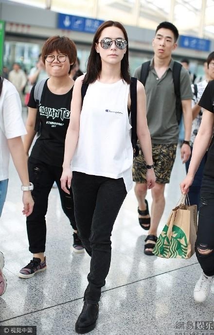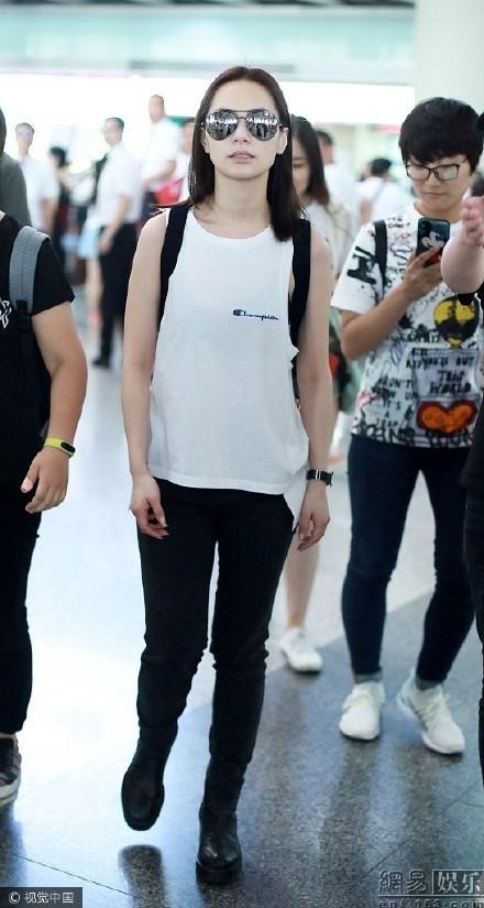 戴着墨镜,连口红都没画一个,可以说是非常的有颜任性了。