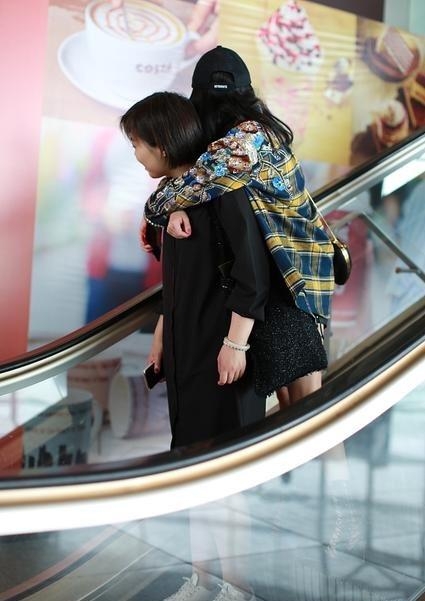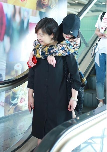 一般情况下,明星都应该酷酷的走机场秀,跟助理黏在一块这种套路还真没见过。