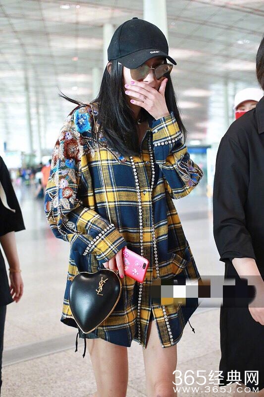 这组机场照中亮点有点多,其中最重要的就是杨幂手机后面的贴纸又变多了。