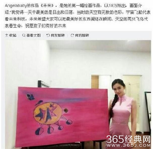 说起用画作做慈善的,还有baby,她多年前献出了自己的第一幅绘画作品,卖出了18万。至于画风如何,大家看看。