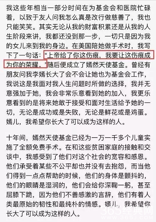 李亚鹏和王菲一起创办了嫣然天使基金会,帮助那些唇腭裂的儿童。从小就是个“小画家”的李嫣,一直在用自己的画作筹集善款帮助别人。