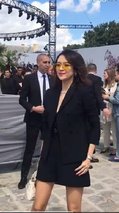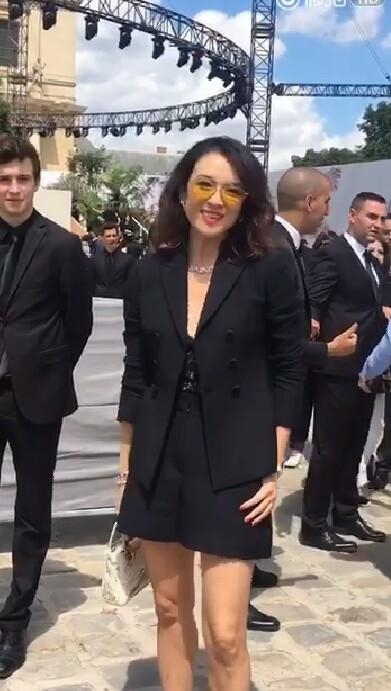 章子怡则是一身帅气西装搭配西装短裤现身,展现职场女性魅力。作为国际影星,章子怡的知名度还是更能显现的,场外的记者都在不停地拍照,章子怡也要不停地转来转去,给每个机位镜头。