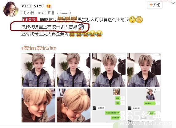 吴亦凡那张脸最有特性的中央想必就是浓眉和嘴巴了,而这妹子也十乘十的在这两点上有研讨。不同于模拟范冰冰时将嘴巴抿的紧紧的,这次在她是“吴亦凡”时,刻意放松脸部线条,嘴巴也呈自然的微张状态!你们本人来看,学足了几成?