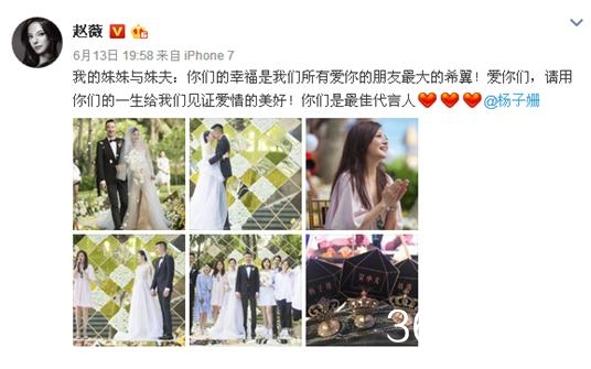 作为杨子珊的老板和姐妹,赵薇的祝福很温暖真诚。