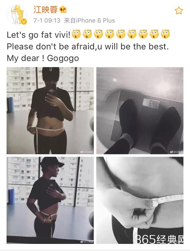 为了表示决心,江映蓉不仅晒不体重,还在微博上公开了腰围。