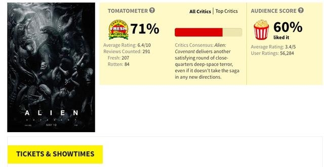 目前影片的烂番茄新鲜度71%