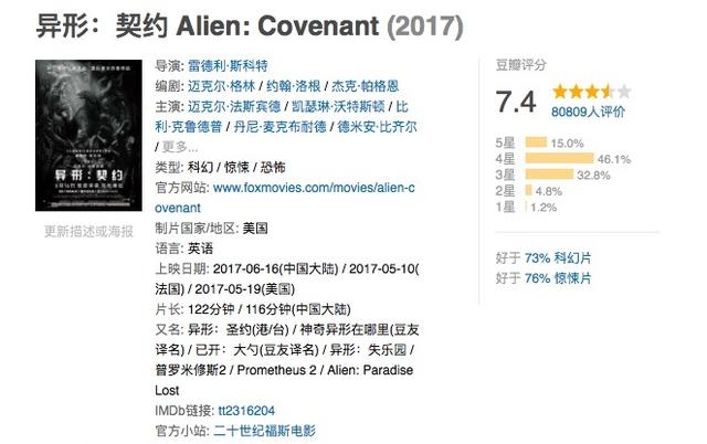 该片是一部由20世纪福克斯于2017年出品的美国科幻电影,是2012年电影《普罗米修斯》的续篇,《异形》系列前传三部曲的第二部。