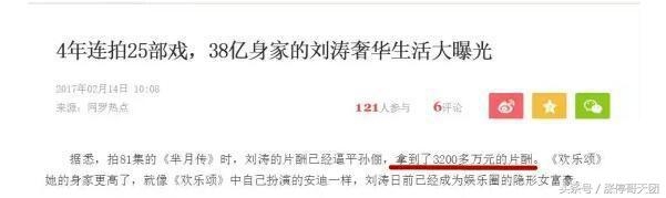 2015年刘涛正式迎来了艺人生涯的第二春,上了春晚,《琅琊榜》《芈月传》的火热播出,也让她的身价顺势上升到40万一集,一部《芈月传》净收3200万。
