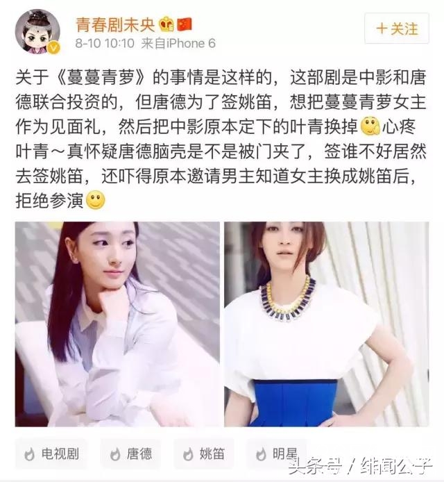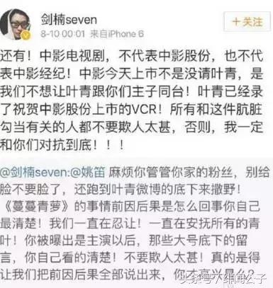看这样子,应该就是因为角色,叶青方的说法就是临时换了角色,换成了姚笛;但是姚笛方却说没有这回事,也不认识叶青之类的...