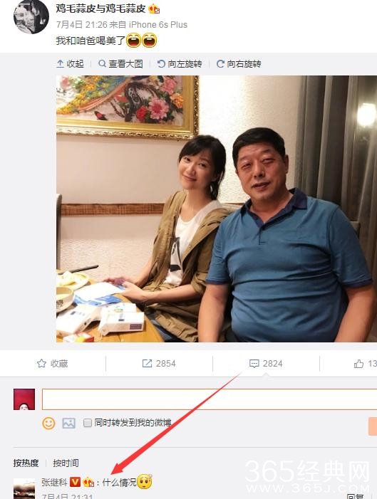 徐静蕾发出微博刚刚5分钟,张继科就留言评论:“什么情况?”网友则纷纷调侃,“明明就是在一起吃饭吧,别演啦”、“你爸要成别人家老爸了”。