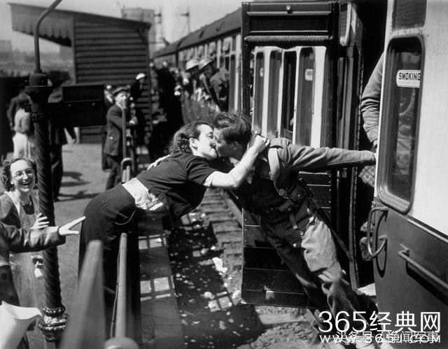 图为历史上从敦刻尔克返回的英军士兵和女朋友亲吻的照片。不过诺兰这部电影,连女主角都没有。