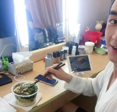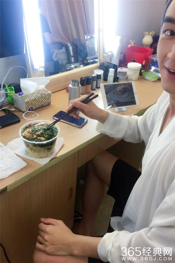 还有这一个在后台吃盒饭的林更新,更是辣眼睛,直接把长长的衣服撩开,露出了黑色的大裤衩,这个画面太美,小编有点不忍直视了。