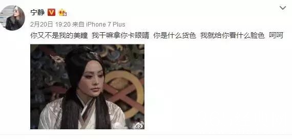 娱乐圈的暴躁一号女星宁静这些年也没得罪人,她称现在年纪大了,懒得将就人,年轻时也没勉强过自己,反正“你是什么货色,我就给你看什么脸色。”