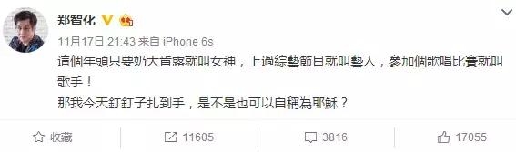 以《星星点灯》《水手》唱遍大江南北的郑智化也是超敢讲话,去年直接发微博怼女神怼歌手。