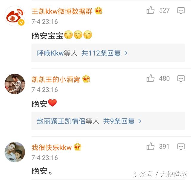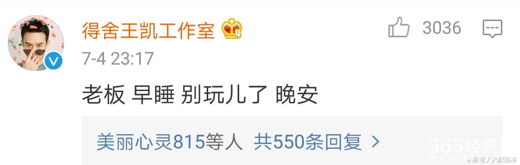 看见偶像这么晚还在刷微博,粉丝们都叫王凯赶快休息了。