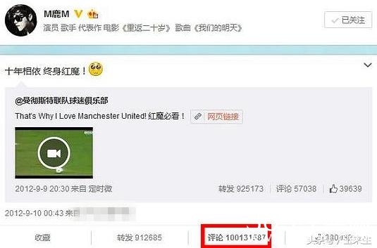 鹿晗,1990出生,是当今很红火的一个小鲜肉,他曾经的一篇微博在回复评论记录上直接破了亿这个传说,打破了吉尼斯纪录。