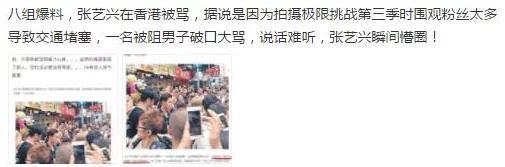之前因为《极限挑战第三季》录制时围观粉丝太多,导致交通堵塞,一名男子指着指骂张艺兴破口大骂:X你老X,靓仔大X晒呀!阻X往晒条路!这件事后粉丝们被气哭180秒,这次兴迷表示无力再哭!