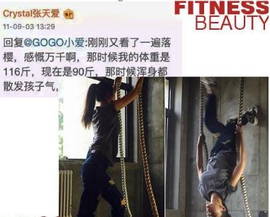 张天爱也在微博上回复,她当初有116斤而现在只有90斤,看来这就是张天爱越来越女神的原因吧!