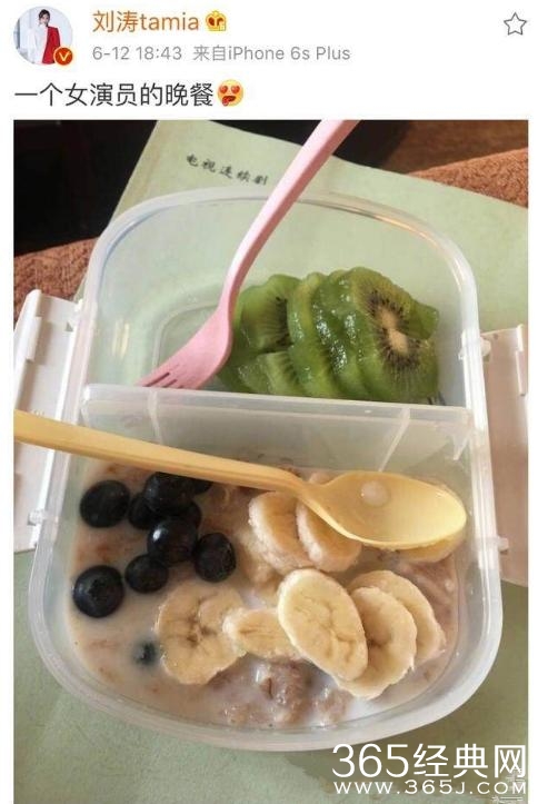 而晚餐就更是在热量上控制的苛刻,只有猕猴桃和香蕉、蓝莓和一些麦片,看来刘涛的好身材保持的也是很辛苦啊。
