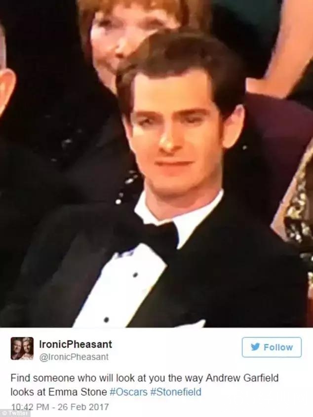 奥斯卡奖领奖时,加菲坐在第一排,静静地看着石头姐发表获奖感言,眼神里的高兴,骗不了任何人。